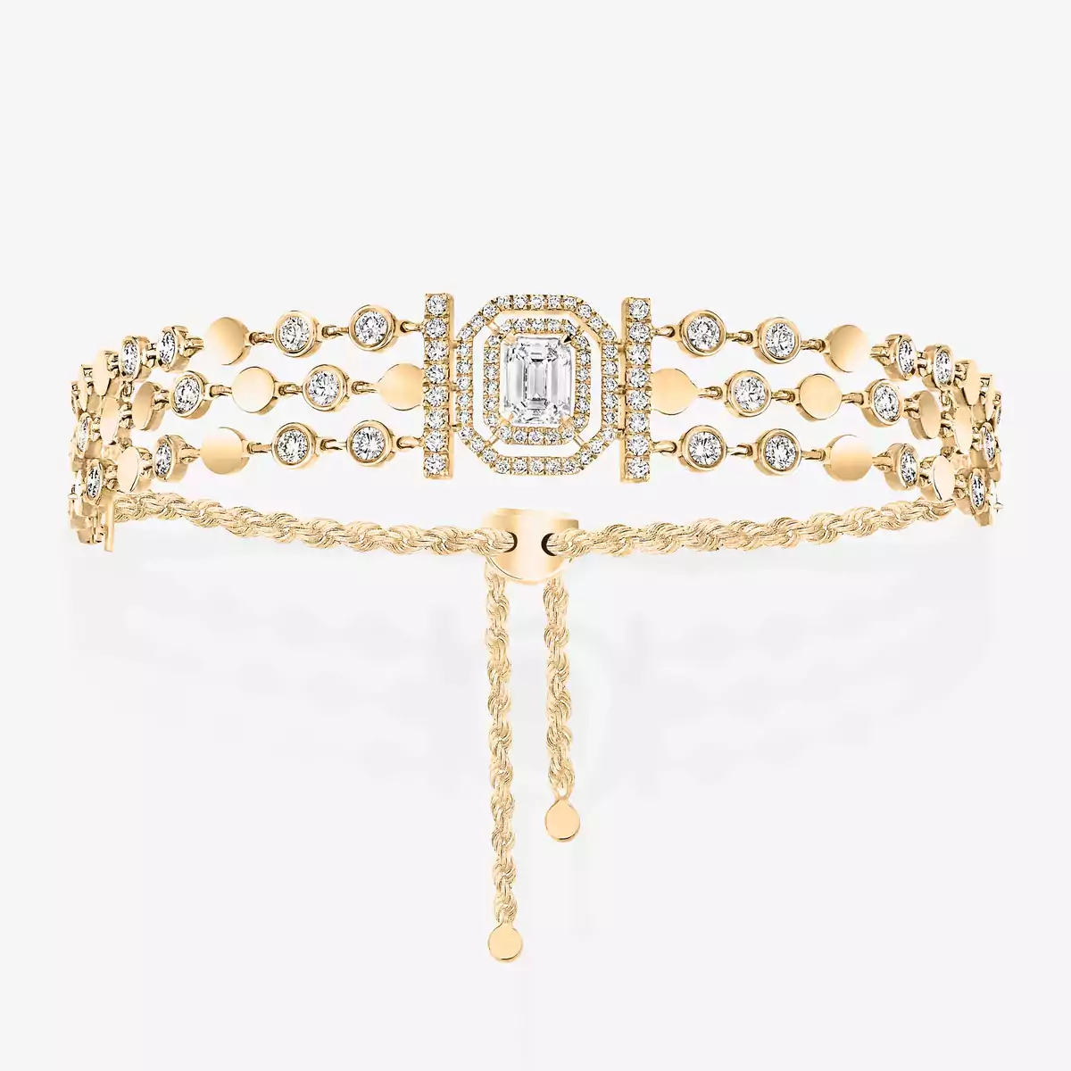 Fall for the D-Vibes multi-row white gold and diamond bracelet! Sophisticated and elegant, this flexible luxury bracelet alternating all-gold and diamond-set motifs has the sensuality of a second skin jewelry piece. The distinctive 0.40-carat emerald-cut diamond surrounded by a further two lines of diamonds is a testament to the Maison’s jewelry expertise.