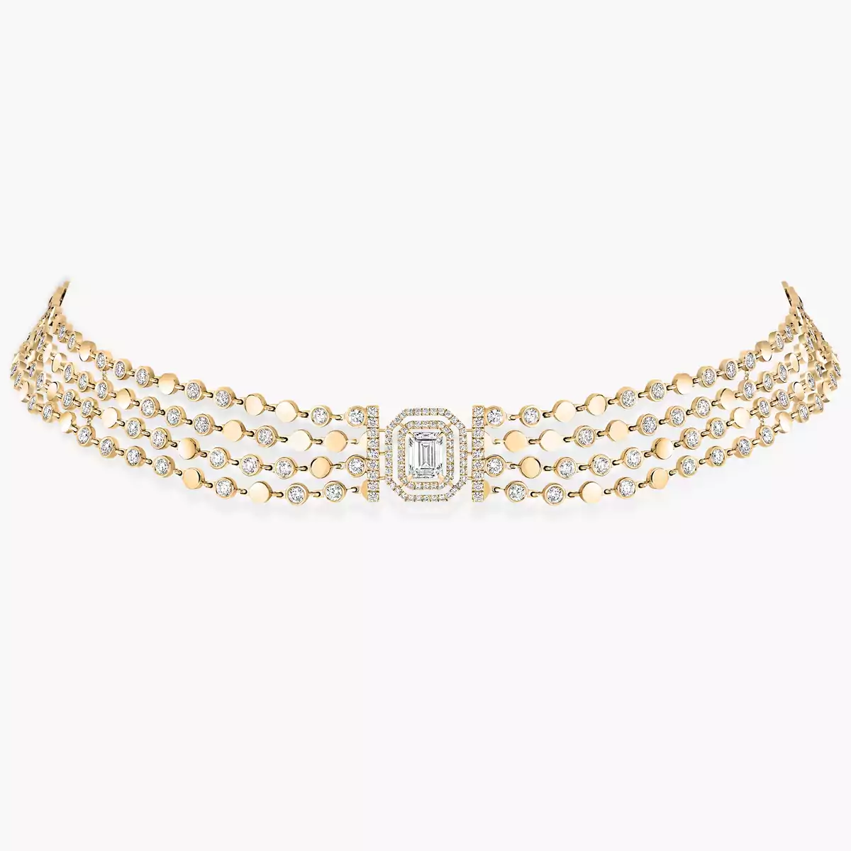 Valérie Messika proposes a necklace with character with the D-Vibes yellow gold and diamond necklace. Alternating all-gold and diamond-set motifs, this modern diamond necklace features an 0.80-carat emerald-cut diamond at its center. Wear it alone, or with the long necklace from the same collection for a sophisticated touch!